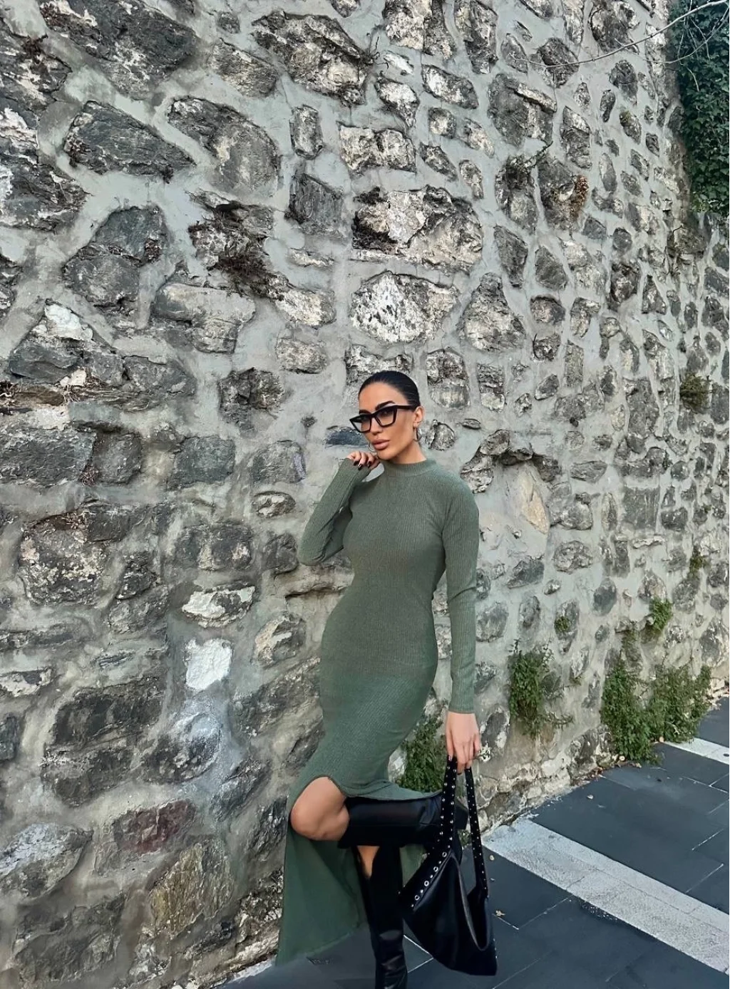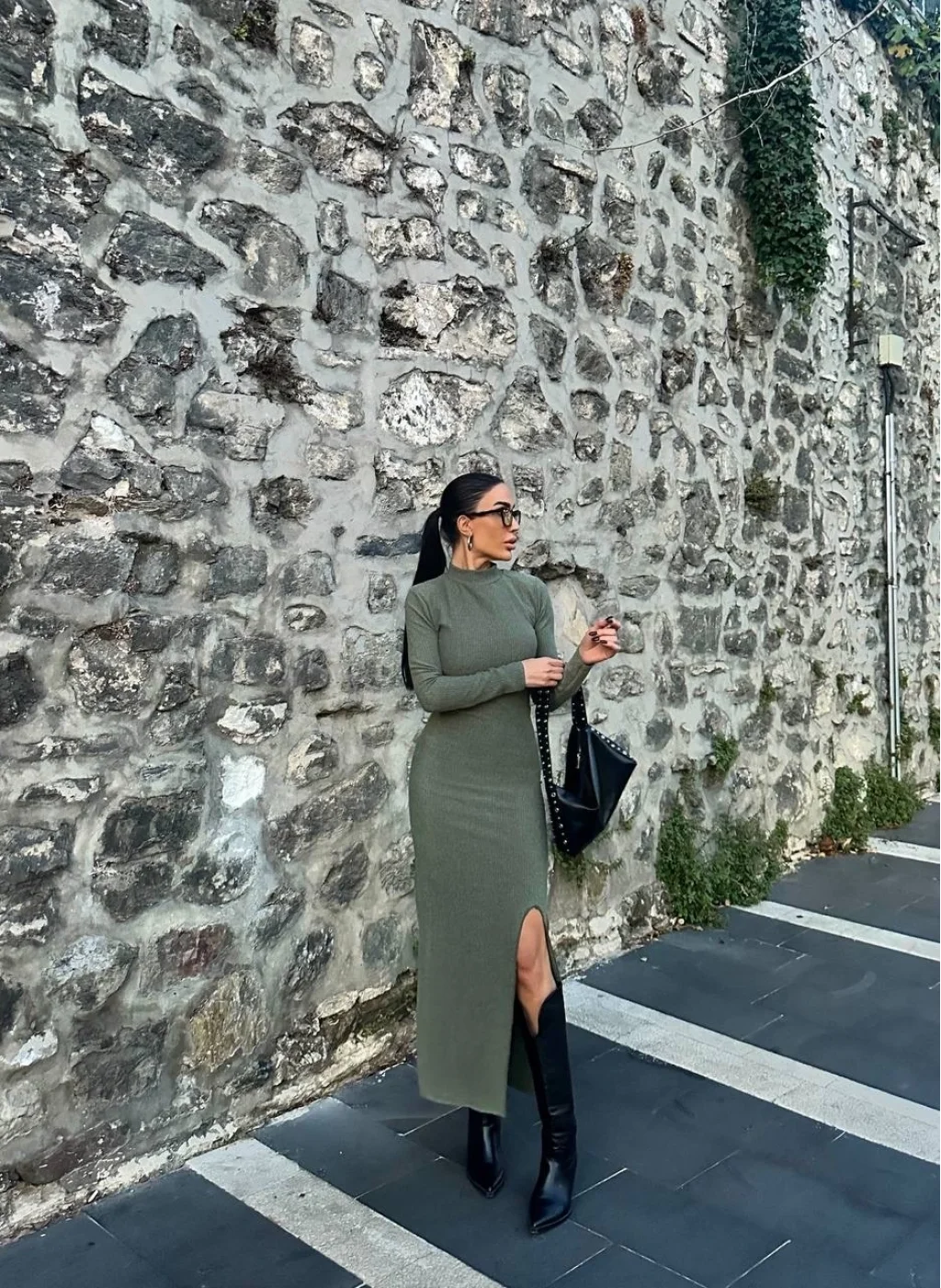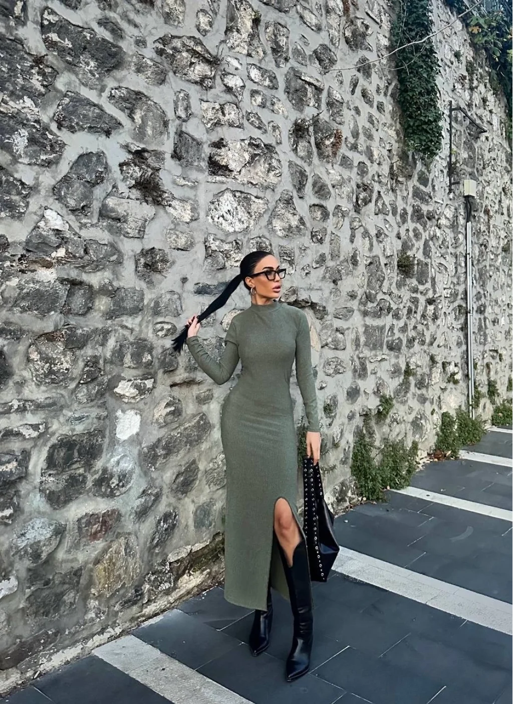 Yırtmaç detayı ile hareketli bir stil oluşturur.