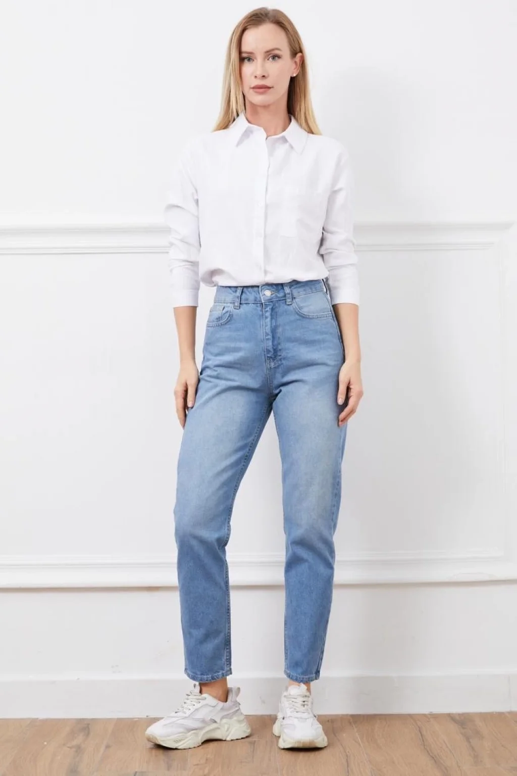 Mom fit bıyık kar yıkama jeans pantolon koyu mavi d2006